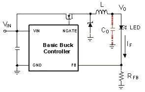鑒于LED的動態(tài)調(diào)光特性好,在設(shè)計的時候要考慮使這種特性能夠方便應(yīng)用。幸運的是,基本降壓開關(guān)電路在實現(xiàn)這些特性的時候表現(xiàn)的非常好,所以LED驅(qū)動一般選擇降壓型開關(guān)電源。
