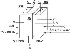 在陽極經(jīng)過質(zhì)子交換膜和催化劑的作用,其化學(xué)過程為: