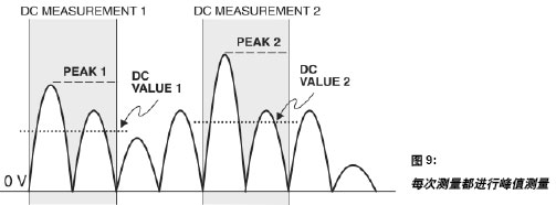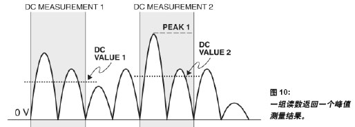 取得一個讀數的一種替代方案是設置為一組讀數,在一組直流讀數中只返回一個峰值測量結果,如圖10 所示。