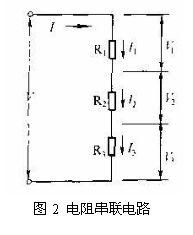 ② 總電壓等于各電阻上的電壓降之和,,即V= V1 + V2 + V3;