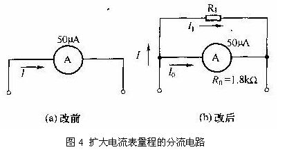 上述的分流電路計算結(jié)果表明,只要在50uA表頭上并聯(lián)一個200Ω的電阻,即可使表頭的量程由50uA擴(kuò)大到500uA。