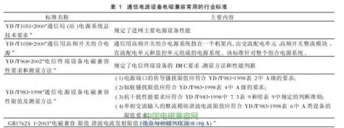 我國通信電源執行的電磁兼容標準基本參照了IEC61000系列、EN55022、CISPR-22等國際和歐洲標準。具體標準見表1。