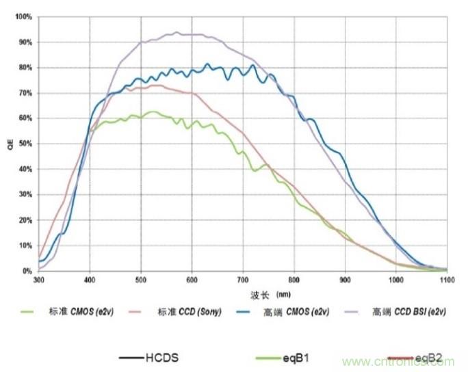 量子效率(Quantum efficiency ,QE) 是直接影響圖像傳感器光電性能的因素,因為光電轉(zhuǎn)換效率的任何損耗都會直接減低信噪比 (Signal-To-Noise- Ratio,SNR) 。它的影響是兩方面的,因為當(dāng)散粒噪聲(信號的平方根)是主要噪聲源時,QE不單是信噪比的被除數(shù)(信號),同時也是除數(shù)(噪聲)。在這一點之上,CCD和CMOS處于同一水平,可是CCD在QE改進(jìn)方面累積有多年的技術(shù)工藝優(yōu)化,而在CIS的QE改進(jìn)發(fā)展相對較遲。基于硅物質(zhì)的物理特性,較長的波長能穿透光敏轉(zhuǎn)換地帶,所以會使用厚的外延材料來增加上紅色和近紅外線波長的QE。根據(jù)比爾朗伯定律(Beer-Lambert law),被吸收的能量是與介質(zhì)的厚度成指數(shù)關(guān)係。高端應(yīng)用的 CCD 利用較厚的硅物質(zhì)和背照(back side illumination ,BSI)工藝以恢復(fù)高寬帶QE和近紅外線(near infrared ,NIR)敏感度,因而擁有優(yōu)勢。