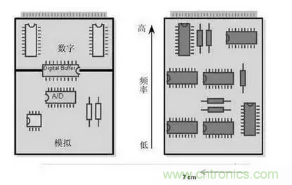 上面的兩種情況,說明數?;旌蠁伟逯?,模擬電路極易受到干擾,會影響信噪比等指標。所以在數?;旌蠁伟?PCB 設計過程中,要對布局布線提出很高的要求。