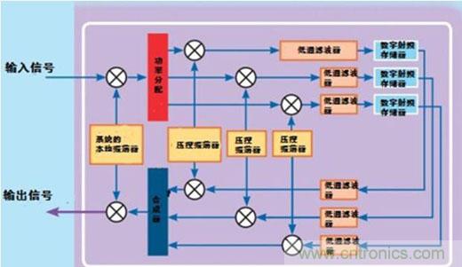 如下圖所示,干擾機(jī)系統(tǒng)將感興趣的頻率范圍轉(zhuǎn)換為多個窄帶數(shù)字射頻存儲器覆蓋的頻率范圍。數(shù)字射頻存儲器系統(tǒng)的輸入信號自動分配給每個數(shù)字射頻存儲器。