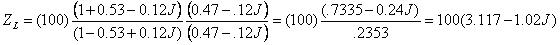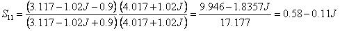 舉個例子,用100歐姆阻抗表征的復合回波損耗S11 = 0.53 - 0.12J 轉換到90歐姆的如下: