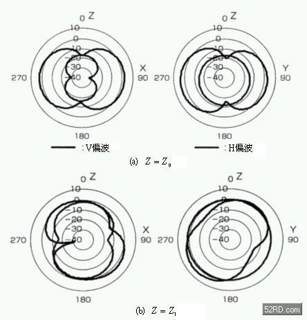 為了探討放射pattern的變化原理,因此對機殼施加電流藉此觀察電流分布特性,根據圖8的測試結果顯示,Z=Z0時上下機殼都有同相電流流動,而且與圖7的放射pattern一樣都是呈側向8字形,由于Z=Z0時為同相電流,因此電界是以側向加算;相對的Z=Z1則變成逆相電流,因此電界橫向相互抵銷,放射pattern整體呈蝶翼狀。由此可知只要改變抗Z就能夠控制機殼上的電流,并使電流產生的放射pattern發生變化?!?br />