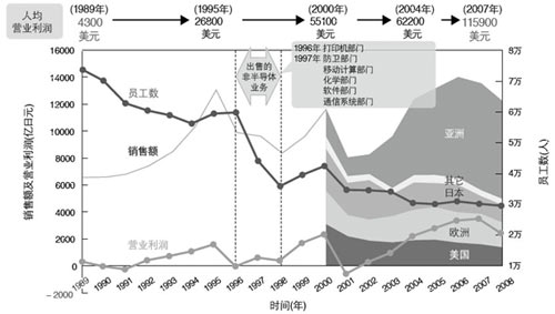 在這一巨大的轉(zhuǎn)變過程中,TI公司的營收也發(fā)生著變化。雖然1995年后營收出現(xiàn)縮減,但隨著DSP/模擬業(yè)務(wù)規(guī)模的不斷擴大,到2006~2007年,公司的營收便超過了變革以前的水平。尤其值得特別一提的是,公司員逐年減少,員工人均營業(yè)利潤的增長卻異常迅速,從1989年的人均4300美元、1995年的2。68萬美元,增長到了2007年的11。59萬美元,在l8年間增長了27倍,1995年~2007年的12年間也增長了4倍多。而且,公司在半導(dǎo)體業(yè)的排名也從1995年的第7位提升到了近年很穩(wěn)定的3~4位。