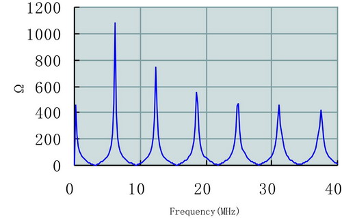研究信道阻抗特性的目的主要是為了實現信道與發射機、接收機之間的阻抗匹配,當阻抗失配時,將造成信號能量的浪費,甚至出現啞信號點。由于中壓配電網的分支多,負載情況復雜,線路阻抗會隨距離、頻率、時間而變化,且變化范圍大,一般在幾十歐~幾百歐之間,圖2即為中壓電力線阻抗特性隨頻率變化曲線。故在實現寬帶網絡接入時,阻抗匹配比較困難;目前,通常采用在耦合技術中通過犧牲匹配性能來適合線路側寬范圍內阻抗的方法,也有系統在發射機端采用阻抗自適應的功率放大設備等,以達到較好的阻抗匹配效果。