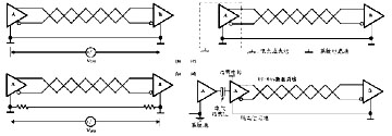 當考慮終端匹配時,有多種匹配方案可以選擇。最簡單的就是在總線兩端各接一只阻值等于電纜特性阻抗的電阻(圖2a)。大多數雙絞線特性阻抗大約在100Ω至120Ω之間。這種匹配方法簡單有效,但有一個缺點,匹配電阻要消耗較大功率,對于功耗限制比較嚴格的系統不太適合。另外一種比較省電的匹配方式是RC匹配(圖2b)。利用一只電容C隔斷直流成分可以節省大部分功率。但電容C的取值是個難點,需要在功耗和匹配質量間進行折衷。除上述兩種外,還有一種采用二極管的匹配方案(圖2c)。這種方案雖未實現真正的"匹配",但它利用二極管的鉗位作用迅速削弱反射信號,達到改善信號質量的目的。節能效果顯著。