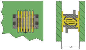 這其中典型的合成連接器例子有:M型歐式連接器、2mmHM的M型連接器以及D-Sub連接器。舉個例子,ERmet2mmM型彎角母連接器提供55針(5排x11行針),并備有三個特殊針腔供放置電源端子或同軸端子。這類連接器可以被單獨(dú)使用,也可以與2mm其他類型如A、B、C、L或N型組合。相對的,ERmetM型垂直公連接器有多達(dá)77針(7排x11行針),其中兩行外排(22針)將與母連接器的屏蔽板連接。相應(yīng)的,公連接器也有三個特殊針腔供放置電源端子或同軸端子。單純的電源模塊例子包括2mmHM電源模塊、MicroSpeed電源模塊以及ATCA電源連接器。除此之外,還有板到線的電源連接——MiniBridge及MaxiBridge。