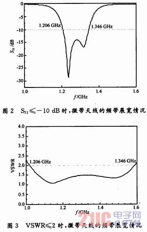 針對微帶貼片天線頻帶較窄的特點,本文提出了一種利用正交微帶線進行饋電的雙貼片微帶天線結構。在VSWR≤2時,頻帶范圍在1.206~1.346GHz之間,帶寬達到了140MHz,相對帶寬達到了11.04%。在工作頻段內,天線的增益有稍許提高,軸比可以接受,所以此天線結構是一種比較經濟實用的微帶天線結構。