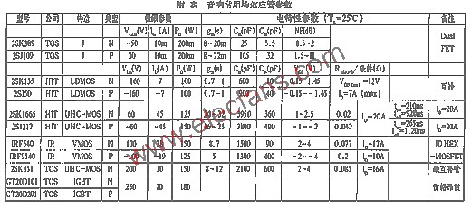 音響常用場(chǎng)效應(yīng)管的參數(shù)如下表: