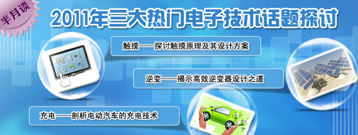 在“蘋果”和“環保”概念下,觸摸技術、逆變器技術以及新型充電技術討論將在延2011年繼續延伸。本期半月談將與大家一起探討觸摸屏在設計的時候需要注意哪些要點,如何提高光伏逆變器效率以及新型充電技術的技巧。