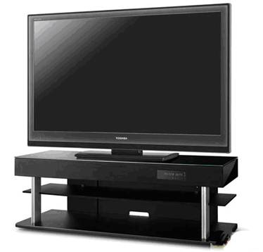 在實際應用中,條形音箱主要置于平板電視下方。如下圖所示: