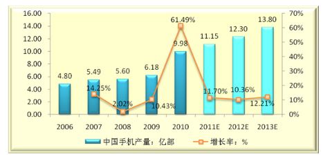 2006-2013年中國手機(jī)產(chǎn)量及未來發(fā)展趨勢