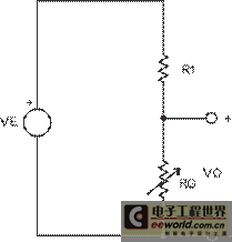 圖 1 顯示的是您如何使用一個分壓器測量電阻。VE 表示激發(fā)電壓。RG 值為: