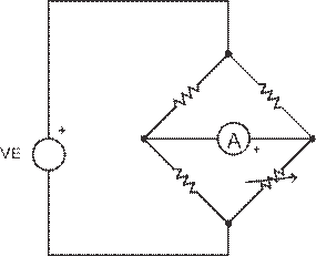 圖 4 所示的惠斯通橋接是一款我們所熟悉的電路,主要用于高精度地測量電阻。1833 年, Hunter Christie 發(fā)明了這種電路,隨后 Charles Wheatstone 對其進行了研究,并做了廣泛的分析,Wheatstone 橋接便因此得名。Wheatstone 還首次運用獨特的鉆石形風格繪制這種電路,并一直沿用至今。