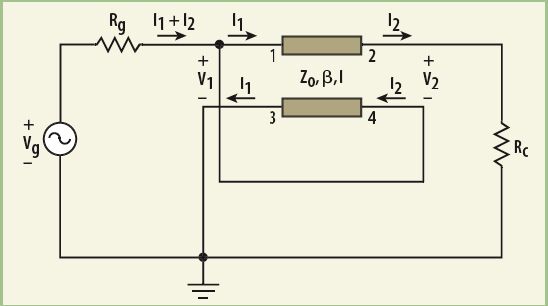 這里:Rg=源阻抗、Rc=負載阻抗、Zo=傳輸線特性阻抗、βl=相位因子、l=kλ=傳輸線長度(這里λ是波長,k是小數值)。