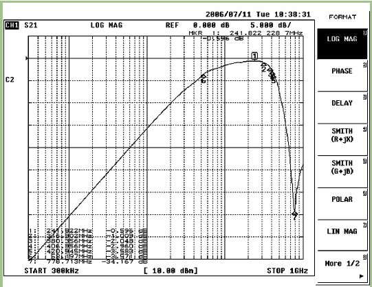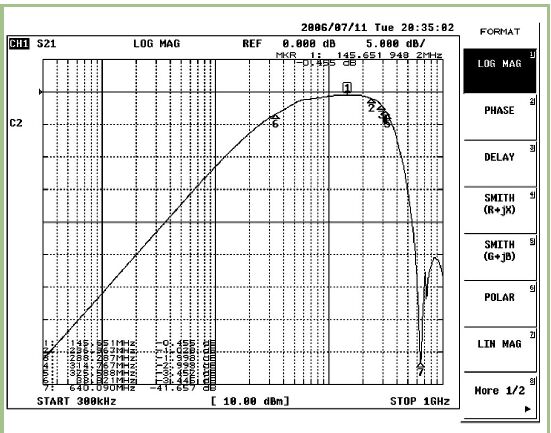盡管三組結果是由不同的方法求出的,但它們彼此吻合良好。分析(MATLAB)和數值(ADS)模型獲得的響應與實驗獲得的響應(VNA測量值)比較起來十分接近。利用分析和數值方法獲得的值近似相等,但與實驗結果相比有少許差異。最好的解釋是,理論模型沒有把變壓器結構中所采用的各元件的復雜特性完全考慮在內,而是按照幾乎“理想”的元件來建模的。