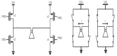 輸出級采用N、P 型功率開關對管組成的全橋開關電路實現,其結構及負載電流流向如圖7 所示。