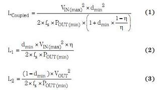 方程式 1 到 3 表明了耦合電感和非耦合電感的電感計算過程。