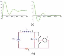 圖3 描述典型漏極寄生電感中的振蕩電流和電壓。注意在下一個開關周期開始之前電流和電壓波形趨向于零。儲存在電感器中的能量被轉換為相關寄生電阻的熱量。