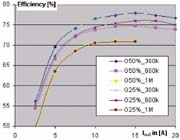 圖6所示效率是指不同頻率下負載電流和漏極電感的函數。此外,可觀察到如下結果: