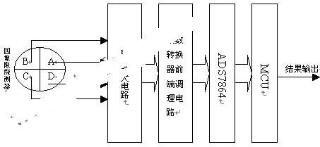 信號通過放大和調理后由由A/D轉換器(本系統中采用ADS7864)采樣轉換成數字量送入單片機,由單片機處理后得到目標的方位,并根據實際系統的需要輸出方位控制指令。