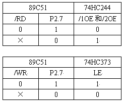 系統采用89C51的P2.7尋址ADS7864,地址為8000H,同時用這個地址信號配合89C51的/WR和/RD信號作74HC244和74HC373的使能信號。要求當89C51的/RD=0,P2.7=1時才開啟74HC244,讀取ADS7864的轉換結果;當89C51的/WR=0,P2.7=1時74HC373才鎖存89C51 P0口上的數據信號,實現往ADS7864的控制端寫數據,其它時候74HC244和74HC373都是關閉的,這樣避免了89C51 P0口上的其它信號對ADS7864的干擾。采用鎖存器74HC373來連接89C51和ADS7864的原因是為了在ADS7864轉換數據的時候保持/HOLDA~/HOLDC、A0~A2端的電平保持不變,免得影響ADS7864轉換數據的精度。74HC244和74HC373的使能信號真值表如下: