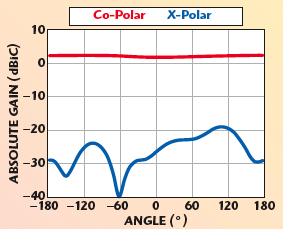 本例中使用的螺旋輻射結構非常適于此種工作模式,但是不再需要與帶有吸收體的腔體連接使用。使用這種結構可以創造兩種類型的天線:雙向結構,這種結構允許螺旋天線自由地向空間中其平面法線的兩個方向輻射;或增益更高的單向結構,這種結構中反射極緊靠螺旋天線使一個方向的輻射被反射回來,因此使前向增益增強。圖4給出了一個雙向螺旋天線。注意到其獨有特征可以擴展頻率覆蓋范圍。圖5給出某同類型天線的電磁仿真。圖6給出類似這種雙向螺旋天線的輻射特性。