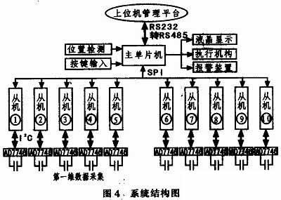 系統工作時,當煙箱剛進入檢測區域時,初始位置檢測開關將輸出信號給主單片機啟動系統,主單片機將通過SPI口依次通知各從機完成對AD7746的初始化,等待采集數據。當煙箱的前一半完全進入到檢測區域時,前半箱位置檢測開關將輸出信號給主單片機,主單片機輸出信號給步進電機,通過執行機構阻擋該煙箱前進,從機馬上采集數據;采集完成后將數據依次發給主單片機。當后半箱煙進入檢測區域時,接著采集后半箱的數據,數據采集完成后,主單片機將通過算法計算,判斷該煙箱是否存在缺條。如果檢測出缺條煙箱,則發信號給執行機構剔除此煙箱,并將缺條位置信息上傳給上位機。煙箱缺條判斷,剔除信號輸出,也可由上位機來完成,以提供更加靈活、可靠的缺條判斷算法。