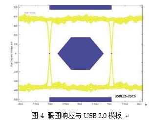 還有一種方法可以檢查這個軌對軌保護(hù)元器件對USB協(xié)議正常工作模式的影響,就是通過圖4的眼圖響應(yīng)來分析信號數(shù)據(jù)位的完整性。