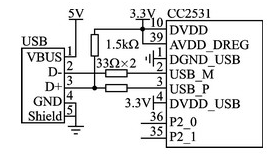 圖3 CC2531的USB硬件連接