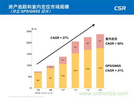 資產追蹤和室內定位市場規模(分立 GPS/GNSS 芯片)