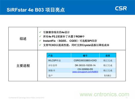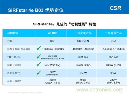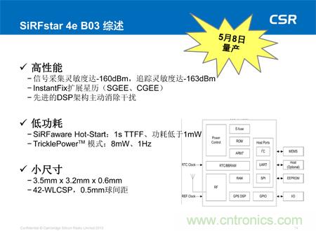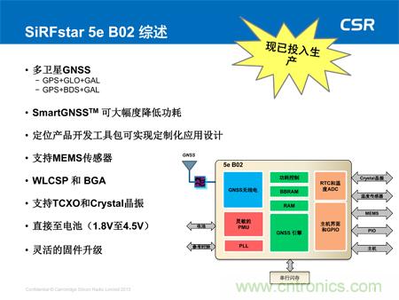 【導讀】幾日前,小編有幸參加了CSR公司在深圳舉辦的定位開發者大會。在會議上,CSR公司定位產品事業部高級總監Dave Borison 以及CSR大中華區銷售副總裁鄭元更先生詳細的介紹了CSR公司最新的產品SiRFstar 5e B02。全面了解了SiRFstar 5e B02在定位上取得的全新的突破性進展,下面請看詳細內容。