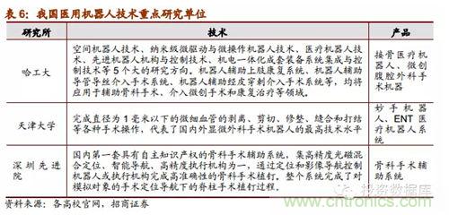 隨著醫(yī)用機(jī)器人技術(shù)的不斷突破和發(fā)展,從2005年開(kāi)始我國(guó)有一批重點(diǎn)高校科研醫(yī)院?jiǎn)挝患把芯克谘芯酷t(yī)用機(jī)器人系統(tǒng)并取得了一些小成就,比如哈工大的微創(chuàng)腹腔外科手術(shù)機(jī)器已經(jīng)成功被專(zhuān)家驗(yàn)收,天津大學(xué)的妙手機(jī)器人在今年3月份開(kāi)始臨床使用;同時(shí),隨著醫(yī)用機(jī)器人商業(yè)化市場(chǎng)化的可能性愈發(fā)明晰,已經(jīng)有部分企業(yè)正在生產(chǎn)或者打算進(jìn)軍醫(yī)用機(jī)器人細(xì)分行業(yè),其中就包括機(jī)器人領(lǐng)先企業(yè)的博實(shí)股份和新松機(jī)器人。