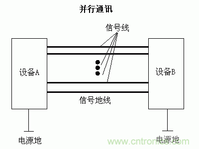 并行通訊中,基本原理與串行通訊沒有區(qū)別。只不過使用了成倍的信號線路,從而一次可以傳送更多bit的信號。