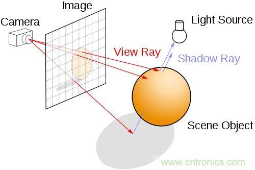 反向追蹤算法正好相反,它是從觀察者的角度出發(fā),只追蹤那些觀察者所能看見的表面投射光。就目前而言,所有3D制作軟件的光線追蹤算法都是采用反向追蹤法,原因是這種算法能夠最大程度地節(jié)省計算機的系統(tǒng)資源,而且不會導致渲染質量的下降。