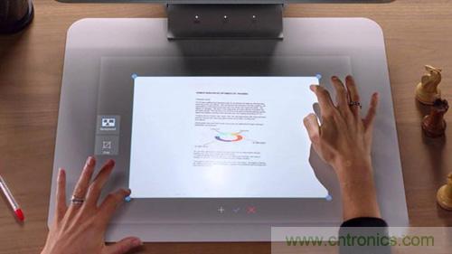 Sprout Pro 與初代的 Sprout 相比的話,最大的區(qū)別就是 Sprout Pro 還是更多的面向商用和課堂應(yīng)用的軟件上。例如,用戶可以將頂置攝像頭當(dāng)做是一臺(tái)掃描儀,然后在電話會(huì)議的中途,通過(guò) Skype for Business 發(fā)送文檔。