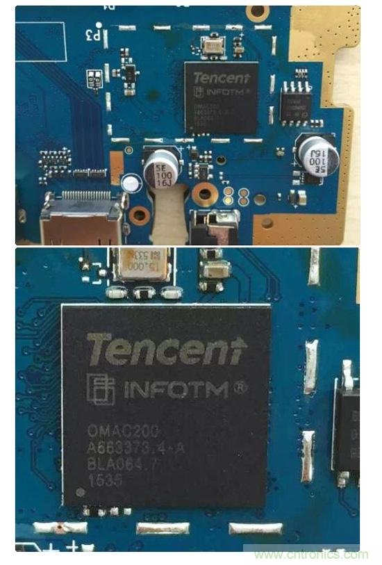 2015年11月9日,騰訊miniStation微游戲機發布,經拆解后發現主芯片上醒目地印有兩個Logo:Tencent、INFOTM。