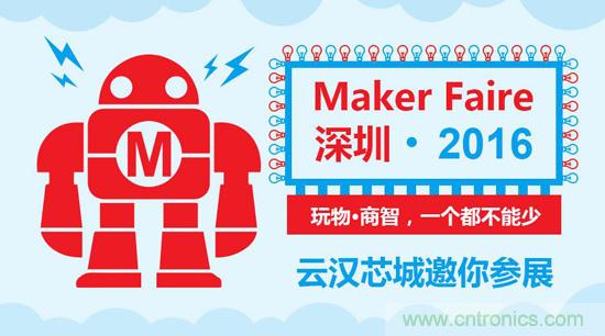 【導讀】2016年10月21日-10月23日Maker Faire在深圳南山蛇口海上世界舉辦,云漢芯城作為合作伙伴參展,為大家準備各種抽獎及現場開發板特賣等活動,屆時我們不見不散,一起嗨翻天。