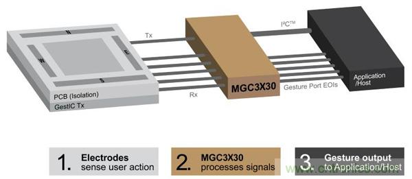 其中比較有代表性的,要數(shù)Microchip公司的GestIC技術(shù)。它基于電場(chǎng)感應(yīng)的原理,在電子設(shè)備周邊的空間中形成一個(gè)電場(chǎng)。當(dāng)手部在空間中運(yùn)動(dòng)時(shí)會(huì)使電場(chǎng)發(fā)生畸變,布設(shè)在電場(chǎng)中的電極接收器會(huì)感應(yīng)到這種變化,并通過(guò)專(zhuān)門(mén)的控制芯片進(jìn)行信號(hào)處理,對(duì)手勢(shì)進(jìn)行識(shí)別和運(yùn)動(dòng)追蹤,并將數(shù)據(jù)傳遞給電子設(shè)備做出響應(yīng)。Microchip代理商世健公司產(chǎn)品經(jīng)理介紹,與采用攝像頭的光學(xué)3D手勢(shì)識(shí)別技術(shù)相比,GestIC技術(shù)最大的優(yōu)勢(shì)在于功耗極低,能耗節(jié)省多達(dá)90%,同時(shí)能避免環(huán)境光等外部因素的干擾,雖然是一個(gè)近場(chǎng)識(shí)別技術(shù),但其在家庭自動(dòng)化、家電控制、音響系統(tǒng)、電腦及配件、汽車(chē)電子等方面,會(huì)有諸多應(yīng)用場(chǎng)景。