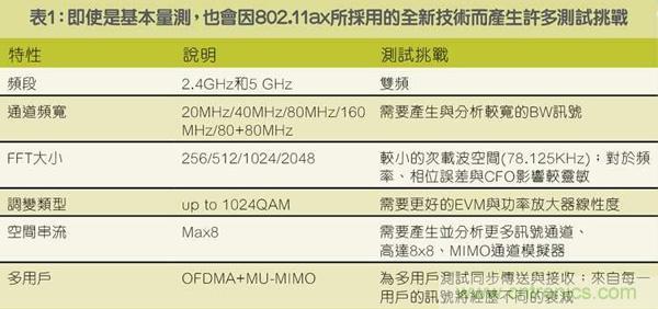 表1:即使是基本量測,也會因802.11ax所采用的全新技術而產生許多測試挑戰