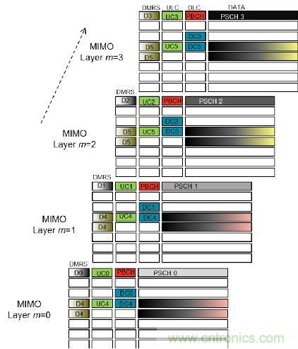 5G NR(新無線電)規范草案沒有指明所支持的 MIMO 層數量,不過很可能高達 32 至 64 層。5G 系統將支持在每個 TTI 期間對用戶資源分配進行快速重新配置,以實現更高頻譜利用率。當支持多個 MIMO 層時,這會進一步加大系統復雜性。圖 2 給出了 5G MIMO 系統中用戶資源分配實例。時分雙工 (TDD) 有助于緩解 5G Massive MIMO 的實現,其中信道狀態信息利用信道互易性來確定。該方案未考慮用戶端設備或終端中的非線性。需要指明的重要一點是,在 5G 基站實現方案中,終端需要記錄多個波束并定期請求基站進行資源分配,以便為上行數據傳輸分配最佳波束。當 UE 終端切換波束時,需要重新計算信道狀態信息。為了實現如此復雜的系統,務必要引入足夠的靈活性和可編程性,以便調整實現方案,針對不同終端實現所需的性能。