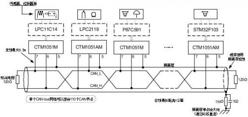 無論總線網絡長短,網絡兩端都需要加終端電阻; 通訊距離長時,適當增加終端電阻值,減少總線電阻對信號的衰減,如150Ω~300Ω; 有強烈干擾的場合使用屏蔽雙絞線,屏蔽層單點接大地; 收發(fā)器CAN接口輸出的差分電平會隨著供電電壓的變化而變化,應確保供電電壓在手冊規(guī)定范圍內。
