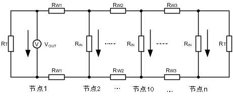 2.實際組網分析目前收發(fā)器的最大組網節(jié)點數為110個,組網時我們考慮以上的電阻參數,確保總線上的差分電壓在合理的范圍內即可。 圖 3為CTM1051M推薦的組網拓撲,我們要考慮總線電阻,終端電阻,發(fā)送點,接收點電壓參數。畫出其等效電路如圖 4所示。