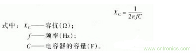 電容器對交流電有特殊的電阻特性,稱為容抗。容抗可由下式算出,即