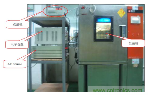 C.模擬電源終端應用狀況,對電源進行密封,并依電源負載條件對電源輸出端帶載,在所需求的環境下進行點溫測試.如下圖: