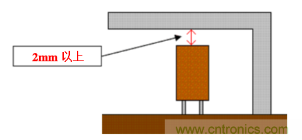 進行臥裝時請勿在電解電容端子根部施加力量. 如下圖: